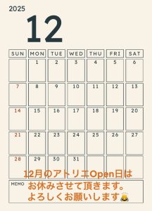 【12月のアトリエOpen日はお休みさせて頂きます。